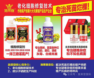 4、施药时间:选择晴天上午10点前或下午4点后喷施,避免高温时段施药产生药害。如果病害严重,传播快可以使用祛腐+细黄杀星+施莱登细胞修复剂喷淋。