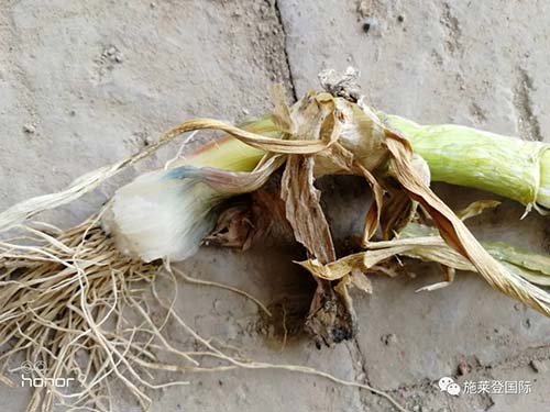 清明以后,雨水越来越多,部分地区出现大蒜软腐!河南省滑县发来图片,大蒜出现发粘腐烂的现象,种植户用了很多化学杀菌剂,就是不见好转,并且严重的地块还在蔓延,农户知道是大蒜软腐病,连续打了几遍药就是不见好转,尤其是清明以后,雨水增加,连续出现低温寡照的天气。病情始终控制不住,无奈之下求助施莱登人给个方案。